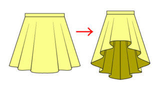 スカートの前後の長さを変える方法 パニエを下にはく場合は、必ず先にパニエを用意してください! ...