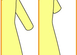 型紙を体にあててソデの丈を決める 体から外し線を清書す...