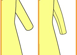 このように2枚のパーツで立体的に出来上がるそでの型紙への改造方法 補助線を引く そで...
