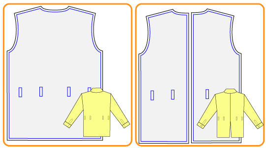 中心の1cm隣の線で写し、左右対称に2枚切るとスリットありの服が作れます。