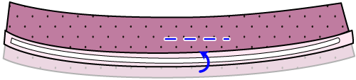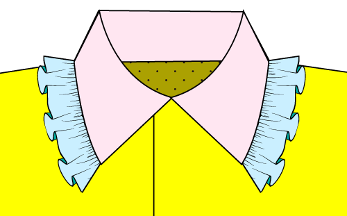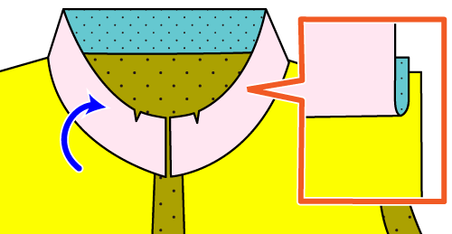こうすると図のように外側に見えるえり(接着芯の貼ったえり)が膨らみます。