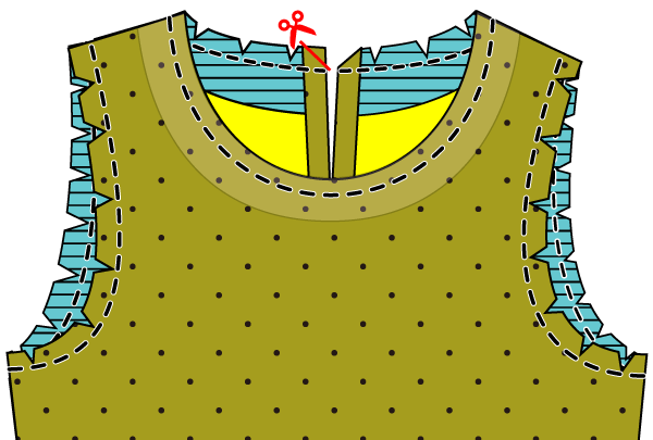 縫い目を切らないように1.5cm間隔で切り込みを入れる。