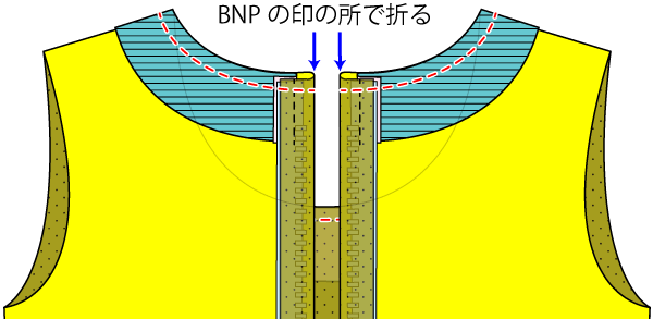 後ろ中心を1.5cm幅で折る。(BNPの印)