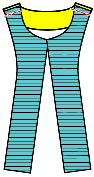 見返しを重ね身頃、衿、見返しを重ねた状態で1cmのところを縫う。