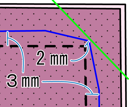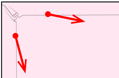 角の縫い代を斜めに切る時に鋭角に切る理由。