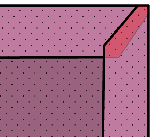ただ斜めに切っただけだと縫い代を折り畳んだ時重なり分が多いので厚くなりやすい。