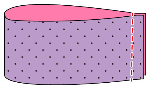 ツイルなど、生地自体に張りがあるものは、左右1枚ずつ裏側に接着芯を貼る。