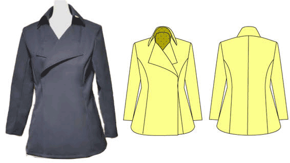 これをしないと図2の右のえりのように長さの不足する表側のえりが引きつってえりの先がぴょこっとあがってしまうので注意が必要です。