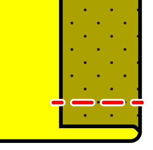 生地を折り曲げたときに生地の厚みで裏と表にずれが生じる。