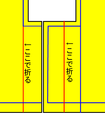飛び出した部分を裏が見えるように3㎝折る。