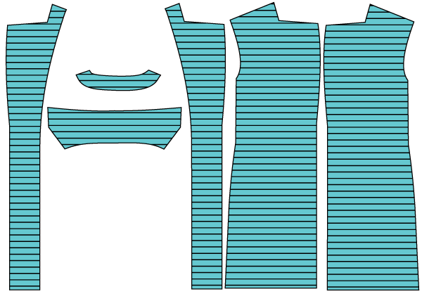 線が横方向になるように切ると着たときは縦に線が出ます。