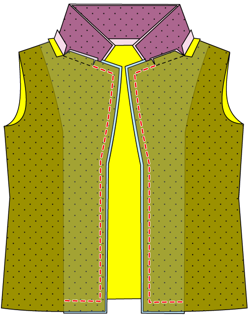 薄い柔らかい生地の場合、前身頃の裏全体に接着芯を貼ると、見栄えが良くなります。