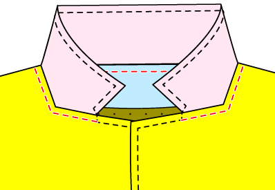 えりをよけて表地と見返しの首周りを縫う。