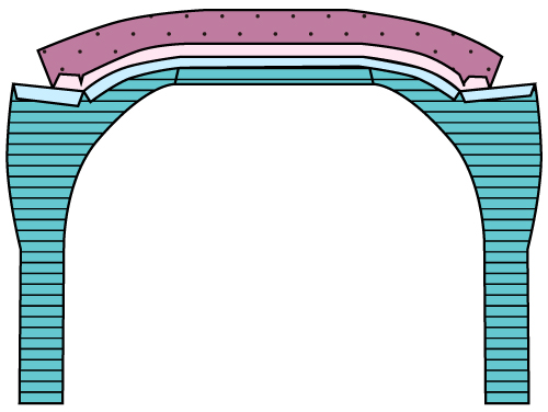 布も同様に外側のカーブの方が厚み分ズレるので、実際に折ってズレを作った状態で縫う必要があるのです。