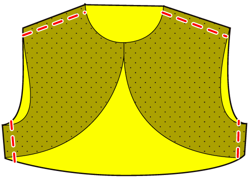 見返しと裏地を縫ったら、裏地の前後の身頃を内側が表同士になるように重ねる。