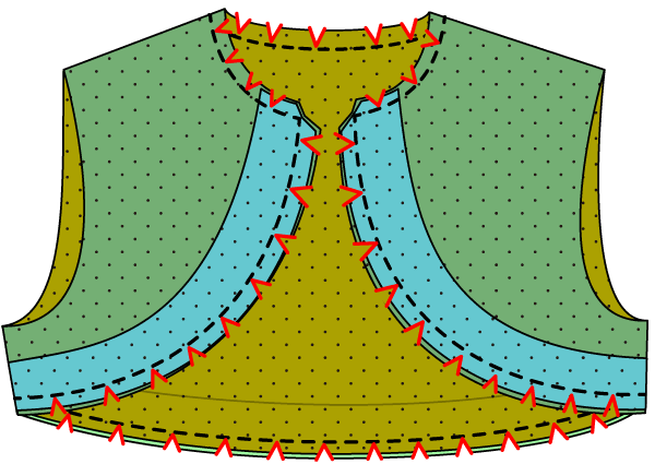 市販の裏地のついた洋服を見ると、同様に折り目をつけて裏地に余裕を持たせているのを確認することが出来ますよ。