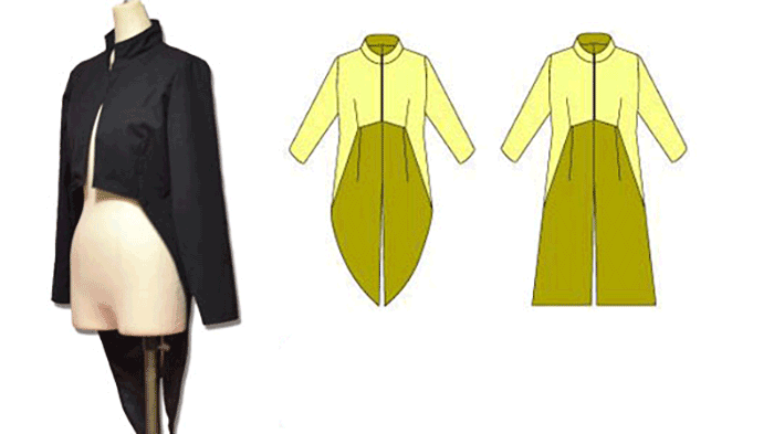 斜めの線で作ると燕尾服風に作れます。(図の青い線)