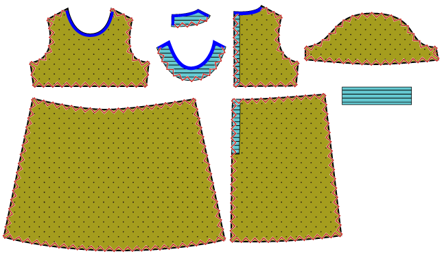 この型紙は2種類のそでとえりと、ウエストラインが作れるようになっています。