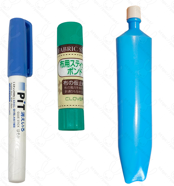 もしくはスティックのり(消え色PIT)があればそれを補助線の下5mmのところと、縫い代の端に塗って、縫い代を貼ってから縫う。