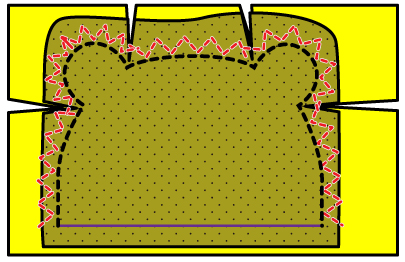 ここに切り込みを入れないと、表にひっくり返した時に生地が引きつる。