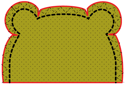 書いた線の上を縫う。下側は頭を入れるところなので縫わずにあけておく。