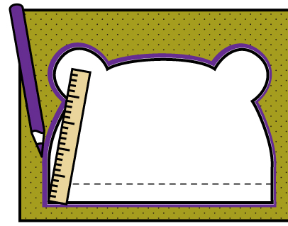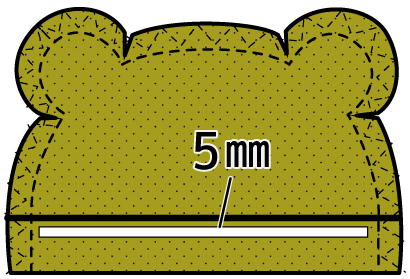 前後の帽子の裏側の下から4㎝の所に補助線を引く。