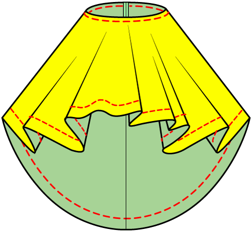 スカートのボリュームは半円とか全円とかではなく、下にはくパニエに左右されます。