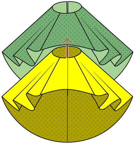 弧が大きくなればなるほどヒダが増えると思ってください。