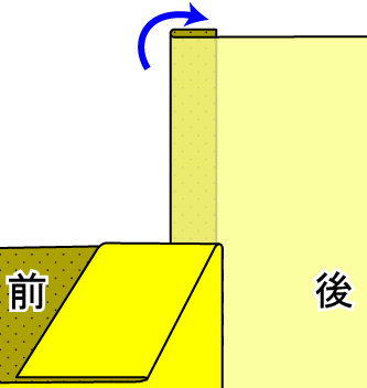 カギホックを付けるための重なり分がある方を左にして置く。