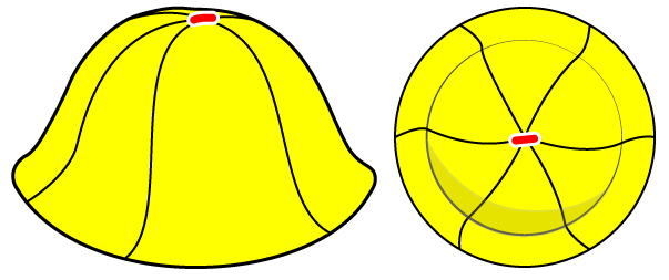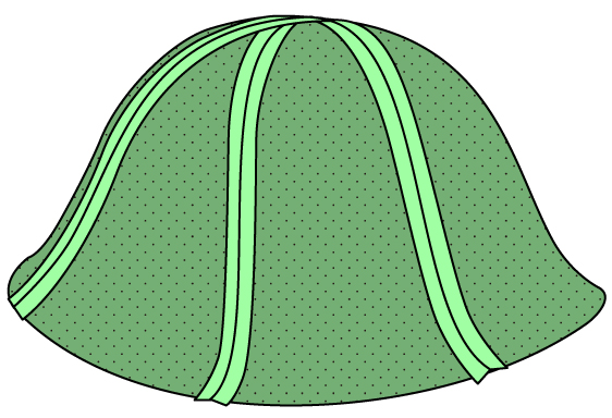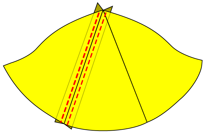 2枚の帽子の部品を表同士が内側になるように重ねる。