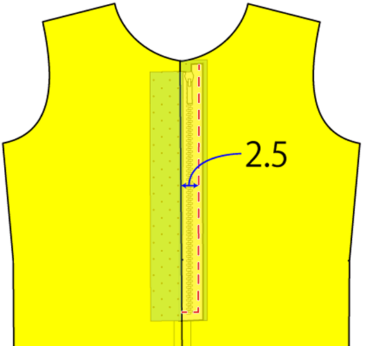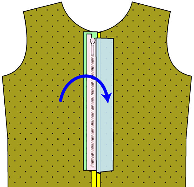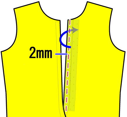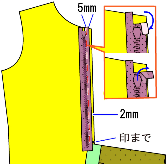 身頃(胴体)も避けて見返しとファスナーだけを縫う。