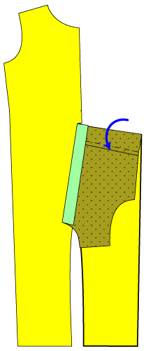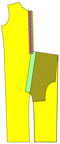 左の身頃(胴体)と見返しという部品を表同士が内側になるように重ねる。