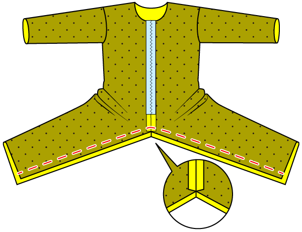 ここで持ち出しを一緒に縫うと着替えられなくなるので、必ず避ける。