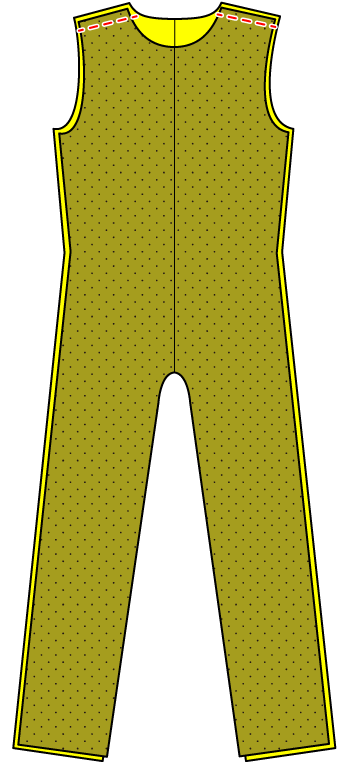 ズボン(下半身)のまたの下を1cm幅で縫う。