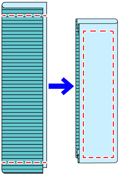 ]アイロンで折った真ん中の折り目と逆向きに折る。