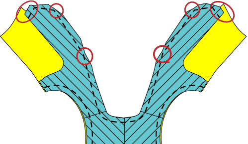 ダーツの中央から1~2mm離すのはベルトの厚みがあるからです。