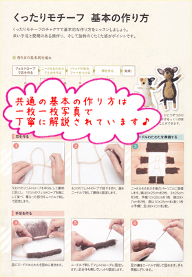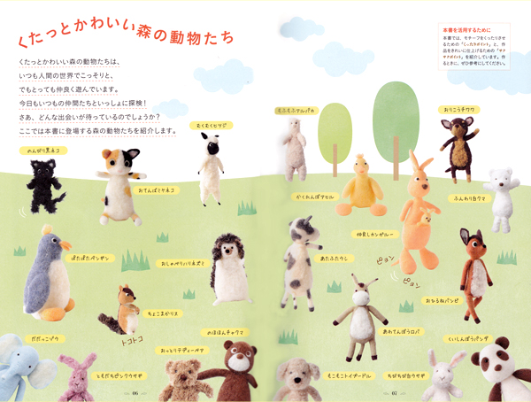 羊毛フェルトを使ってこんな感じのかわいい動物が作れる本です
