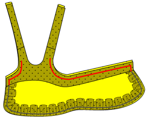 前後の見頃と見返しを合わせて赤い所を縫ってください。