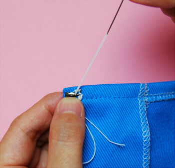 ホックの穴に針を通します | |