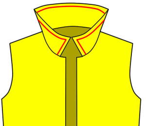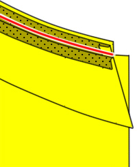 見返しを裏を上にしてかぶせてください。 えりと見返しの縫い代を縫ってください。 |