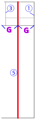 ポケットの描きかた 端と上からの位置の補助線を引いてください。 ポケットの縦横の枠を書いてください。 5角形の場合 横幅を2等分して垂直に下に線を引いてください。 垂直に引いた線に向かって底を書いてください。 |