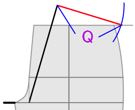 上の3p延長した所から、前の一番上に引いた線の延長線上と交わるように線を引いてください。 H=ウエスト÷4+1pの長さの線を引いてください。 |