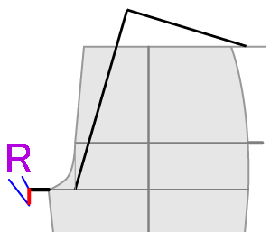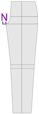 後はお尻の丸み分股上を2.5p出して、1p下に下げてください。 | |