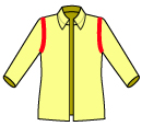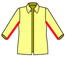服を裏返した状態で袖の中にドミット芯をつけてください。 | |
