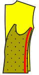 腰のポケットを作ってください。.ポケットの縁取り布と前中心の持ち出しを表が見えるように半分に折ってください。 |