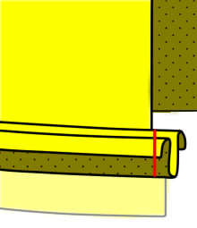 縫い代をベルトの中に入れてください。 見返しの下の縫い代もベルトの中に入れてください。 端から5mmの所を縫ってください。 |