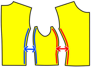 脇のパーツを前身頃と後身頃に重ねて縫ってください。