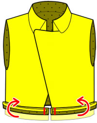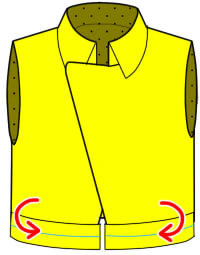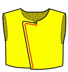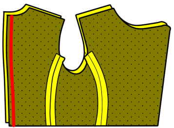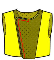 前身頃の表に、裏が見えるように、前見返しを縫ってください。