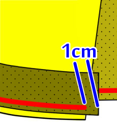 上で出来たズレを、そのままに端から0.5cmの所を縫ってください。 | ||||