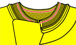 えりのゆるみを作ってください このタイプのえりは図のように表に折り返すためのカーブと